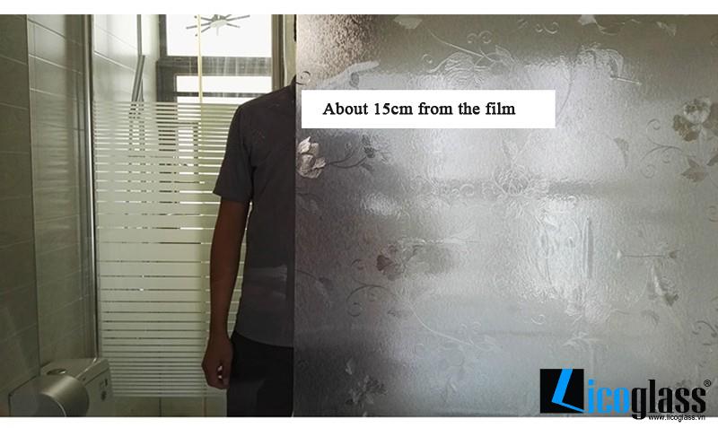 Bước 3: Sau khi đã rửa kính và đo xong bề mặt giấy để dán kính bạn bóc phần linon thừa của giấy dán kính ra. (Lưu ý khi bóc bạn cẩn thận tranh làm giấy bị nhăn hoặc lớp keo của giấy dính vào nhau, bóc đến đâu xịt nước vào đến đó)