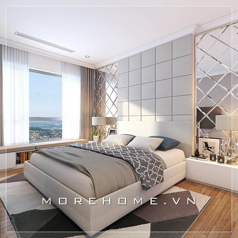 Giường ngủ hiện đại được bố trí hợp lí mang đến cho không gian phòng ngủ thêm tiện nghi và gọn gàng