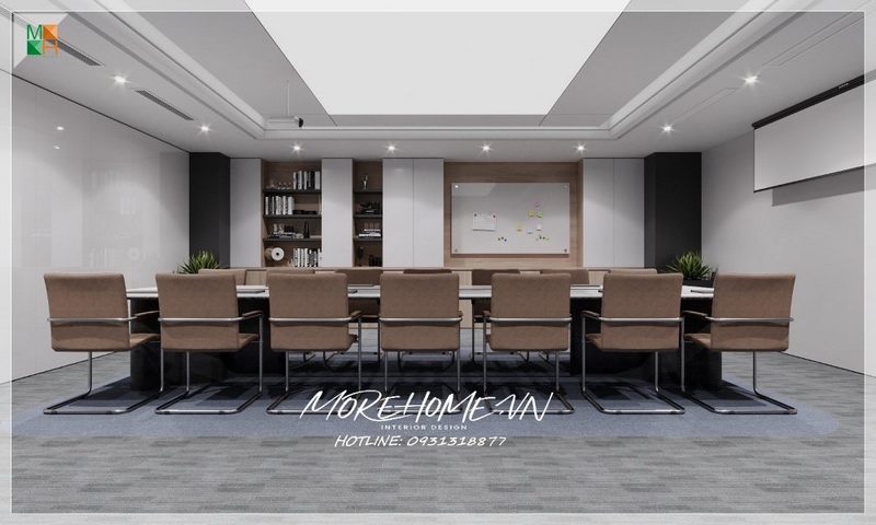 Thi công nội thất phòng họp hiện đại sử dụng gỗ công nghiệp An Cường làm bàn ghế, ốp tường