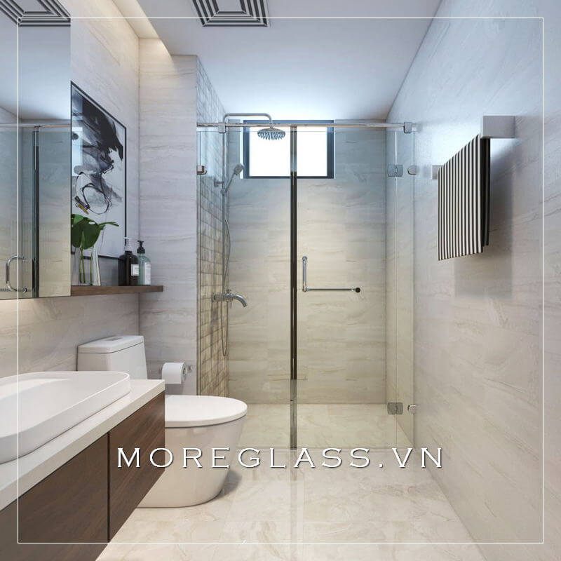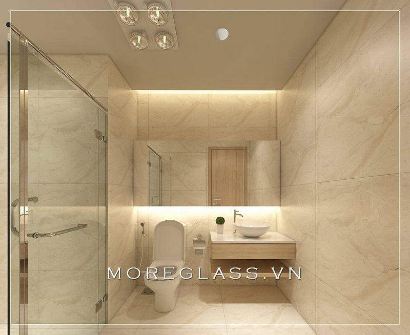 Mẫu thiết kế phòng tắm hiện đại, được bao bọc trong một bức kính trong suốt, để lọc tất cả các ánh nhìn.