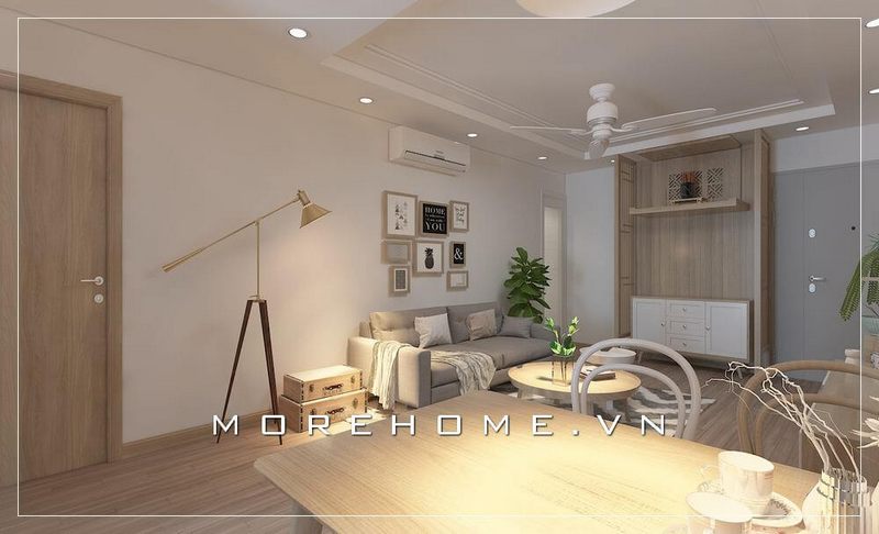 Lối trang trí phóng khoáng cùng đường nét độc đáo tạo nên góc nhìn ấn tượng trong thiết kế phòng khách chung cư.