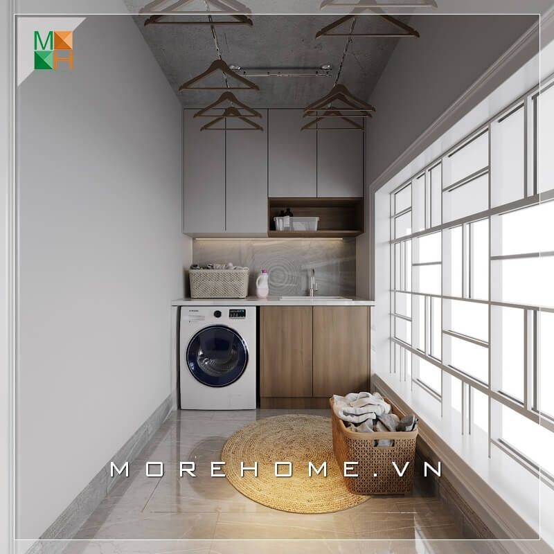 Sự tiện nghi trong lối thiết kế hiện đại, đơn giản mà sang trọng từ không gian phòng giặt, phơi đồ của nhà phố